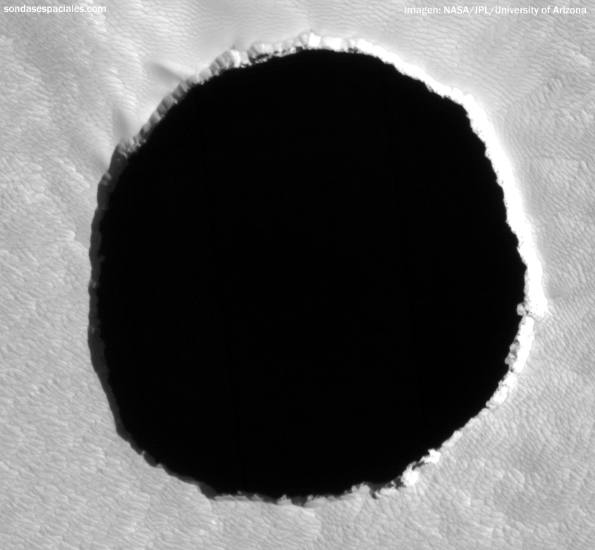 火星100m級の穴が発見された。